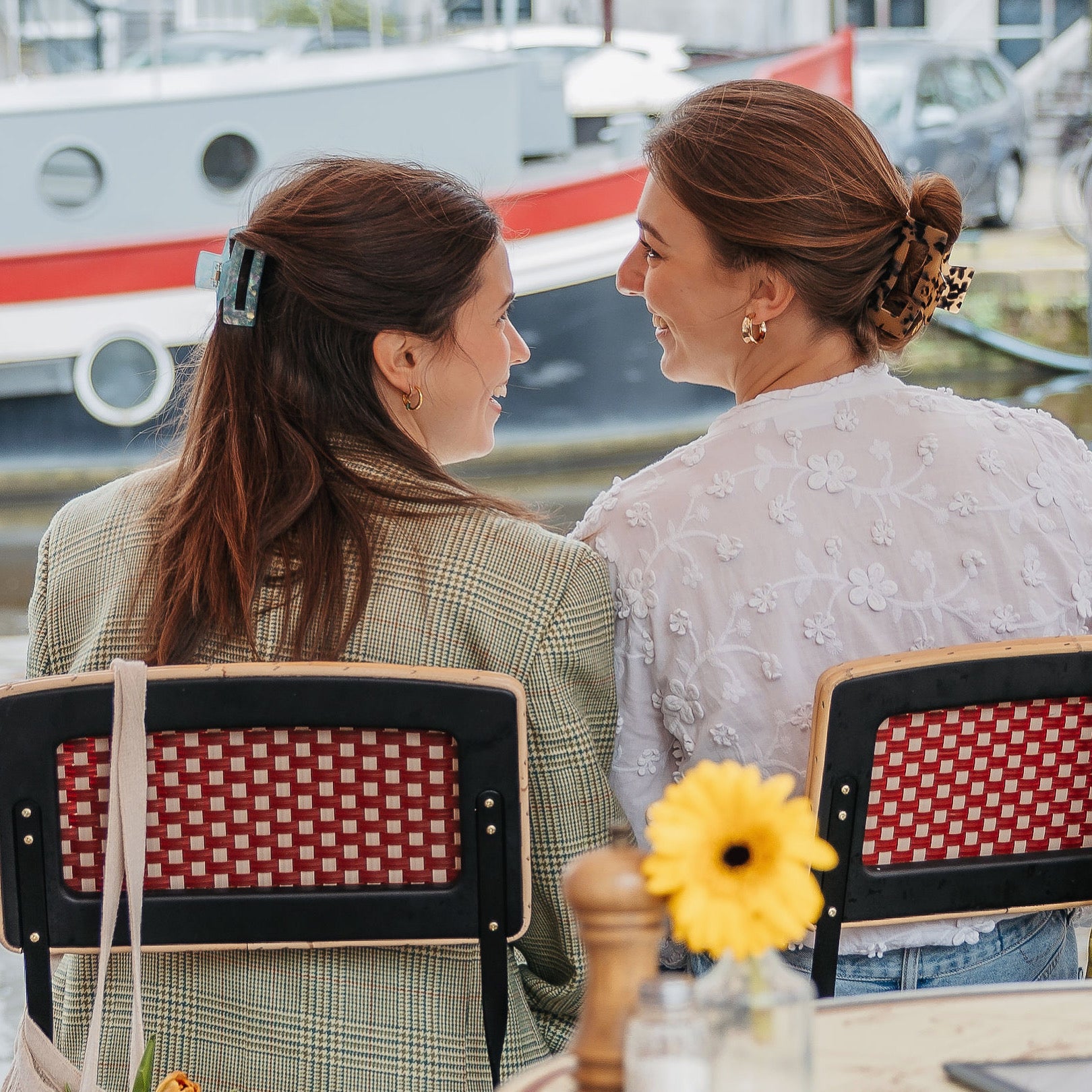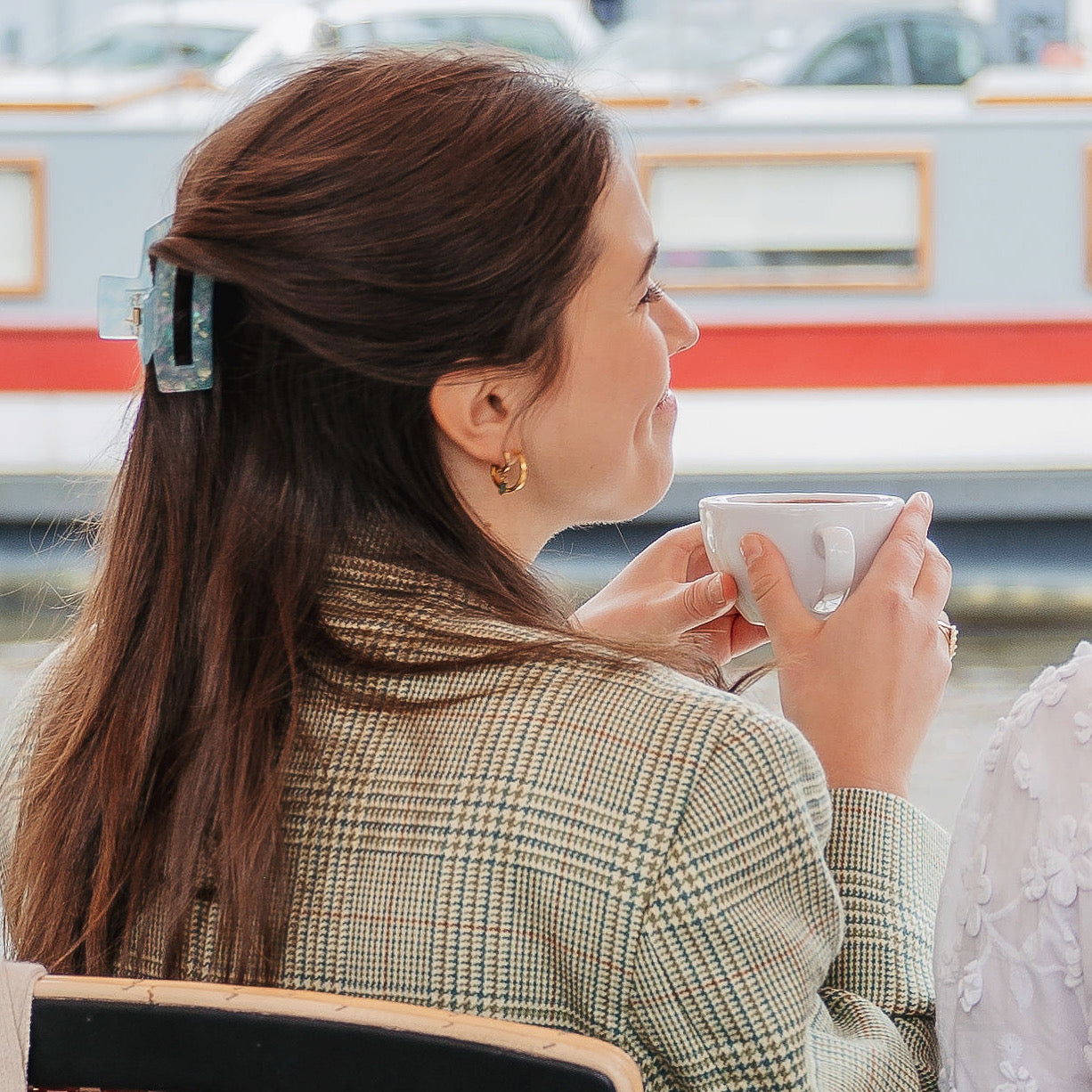 Unsere Haarspangen bestehen aus Celluloseacetat, einem pflanzlichen Biokunststoff mit ISCC PLUS-Zertifizierung. Im Vergleich zu erdölbasiertem Kunststoff ist Acetat nachhaltiger und biologisch abbaubar. Die Acetat- und Metallkomponenten wurden getestet und sind frei von Schadstoffen wie Blei, Cadmium und Phthalaten.