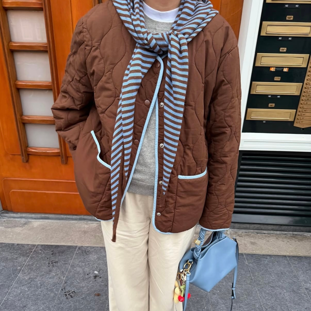 Triangle Scarf - Toffee - Brown & Blue Stripe - Large