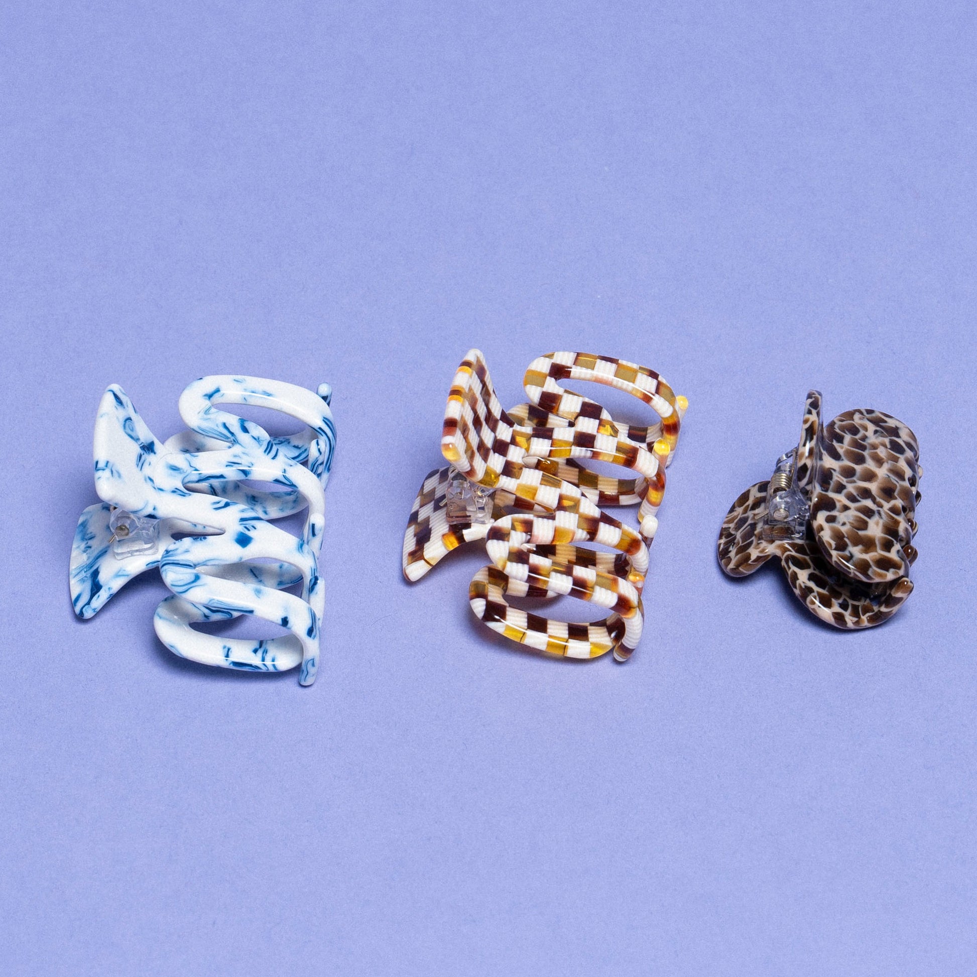 Our hair clips are made of cellulose acetate, a plant-based bioplastic certified by ISCC PLUS. Compared to petroleum-based plastic, acetate is more sustainable and biodegradable. The acetate and metal components have been tested and found to be free of harmful substances such as lead, cadmium, and phthalates.