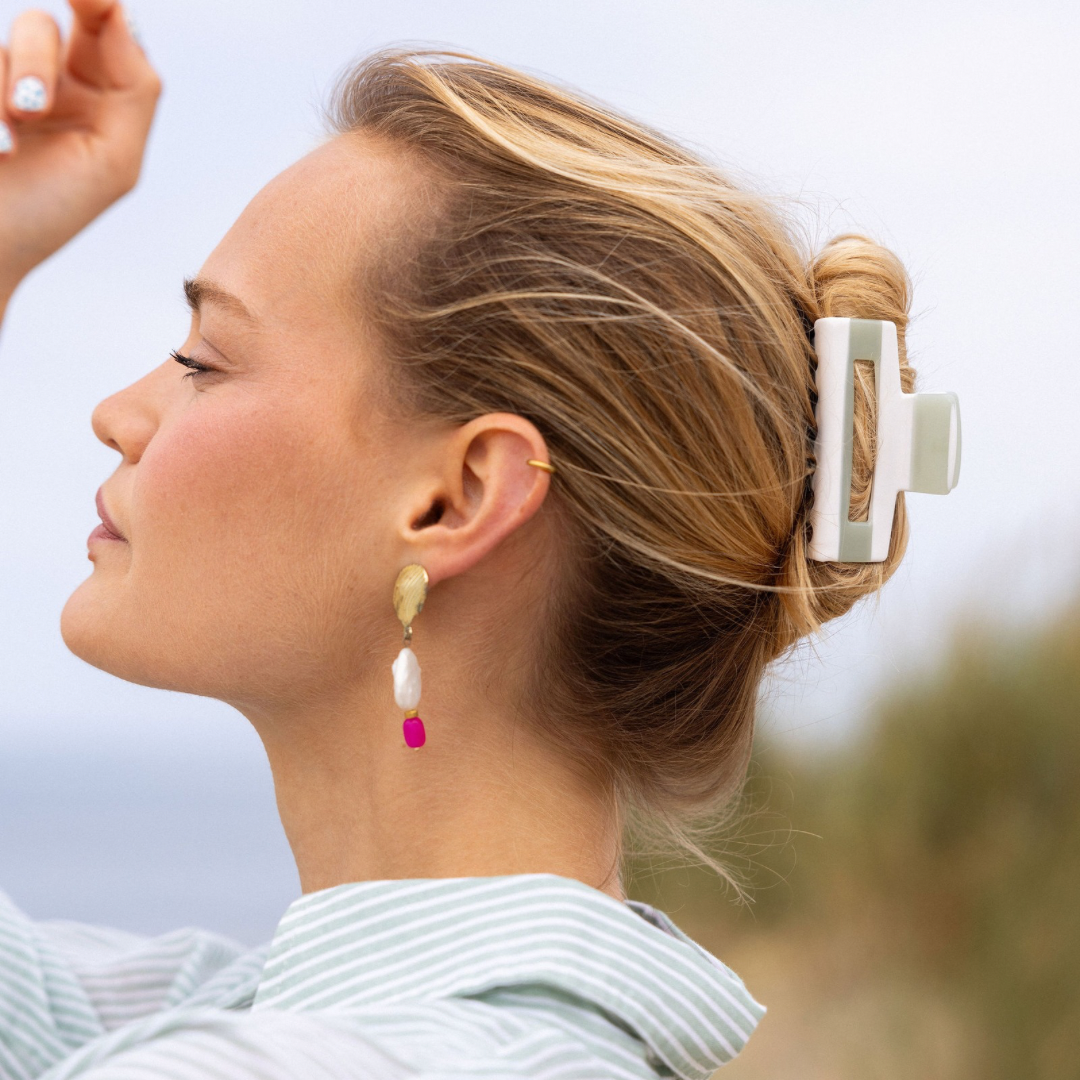 Nos barrettes sont fabriquées en acétate de cellulose, un bioplastique végétal certifié ISCC PLUS. Comparé au plastique issu du pétrole, l'acétate est plus durable et biodégradable. Les composants en acétate et en métal ont été testés et déclarés exempts de substances nocives comme le plomb, le cadmium et les phtalates.