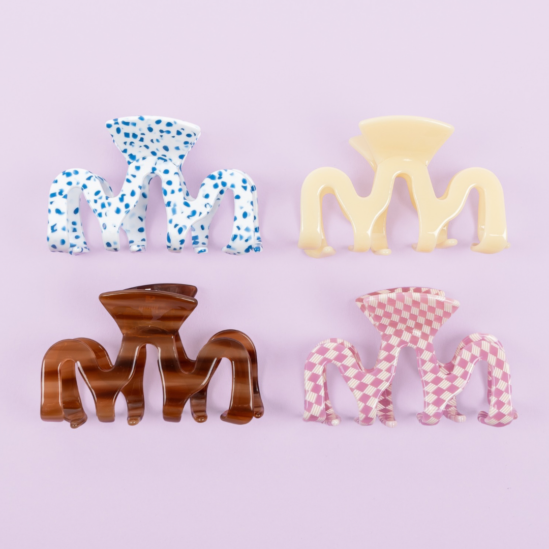 Nos barrettes sont fabriquées en acétate de cellulose, un bioplastique végétal certifié ISCC PLUS. Comparé au plastique issu du pétrole, l'acétate est plus durable et biodégradable. Les composants en acétate et en métal ont été testés et déclarés exempts de substances nocives comme le plomb, le cadmium et les phtalates.