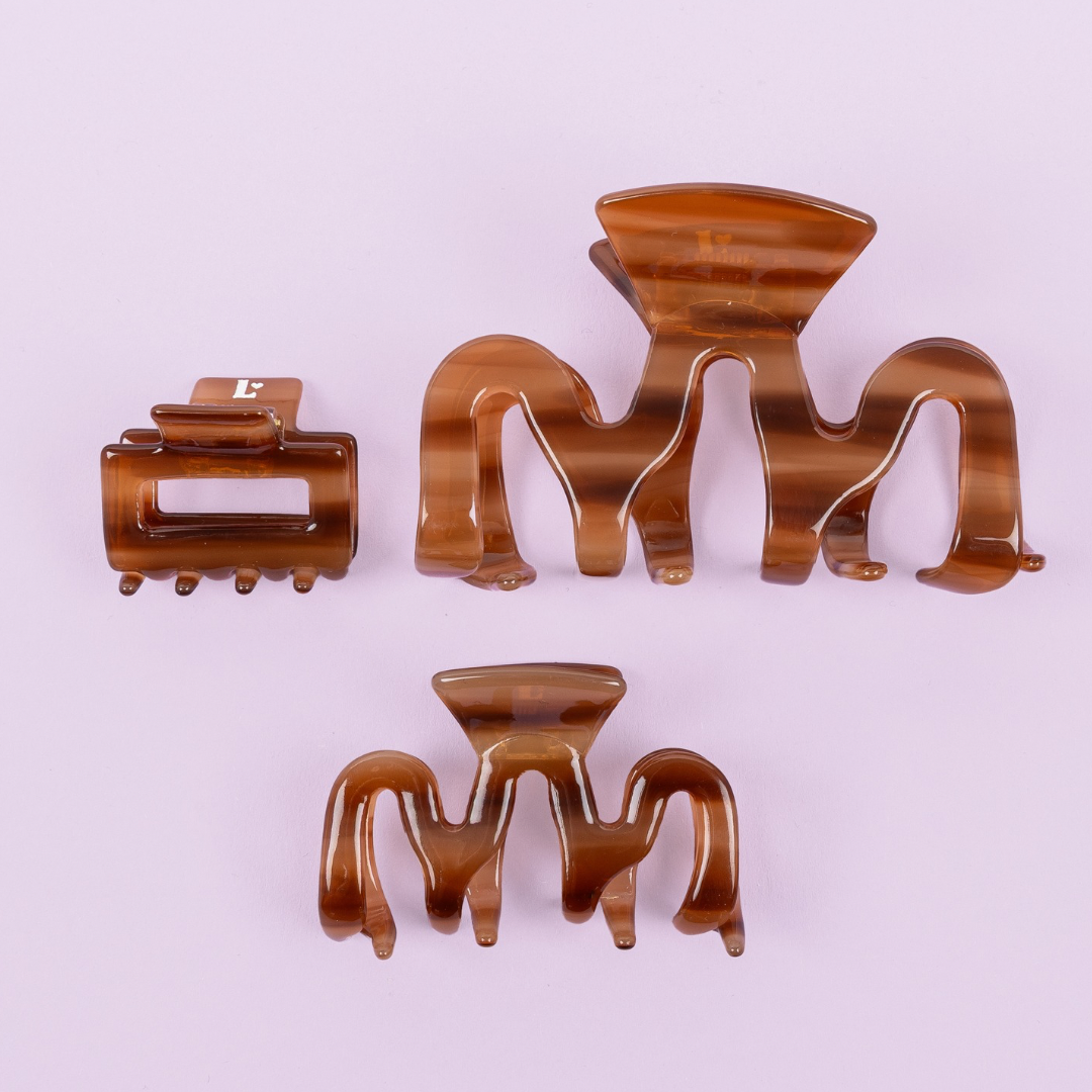 Nos barrettes sont fabriquées en acétate de cellulose, un bioplastique végétal certifié ISCC PLUS. Comparé au plastique issu du pétrole, l'acétate est plus durable et biodégradable. Les composants en acétate et en métal ont été testés et déclarés exempts de substances nocives comme le plomb, le cadmium et les phtalates.