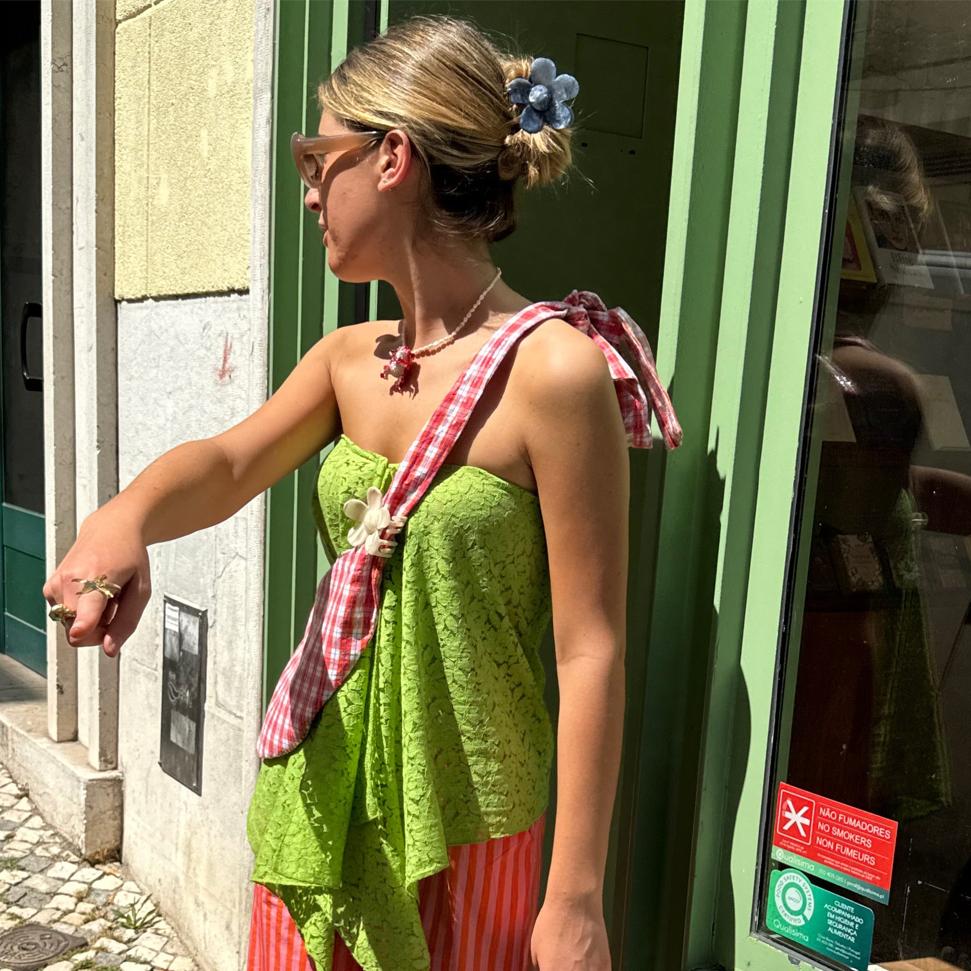 Onze haarclips zijn gemaakt van celluloseacetaat, een plantaardig bio-plastic gecertificeerd door ISCC PLUS. In vergelijking met op aardolie gebaseerd plastic is acetaat duurzamer en biologisch afbreekbaar. De acetaat- en metalen onderdelen zijn getest en vrij van schadelijke stoffen zoals lood, cadmium en ftalaten.